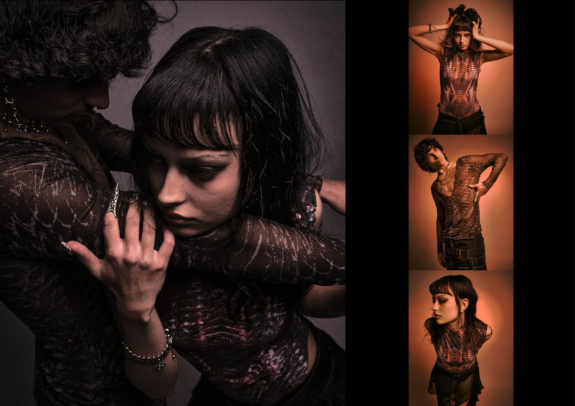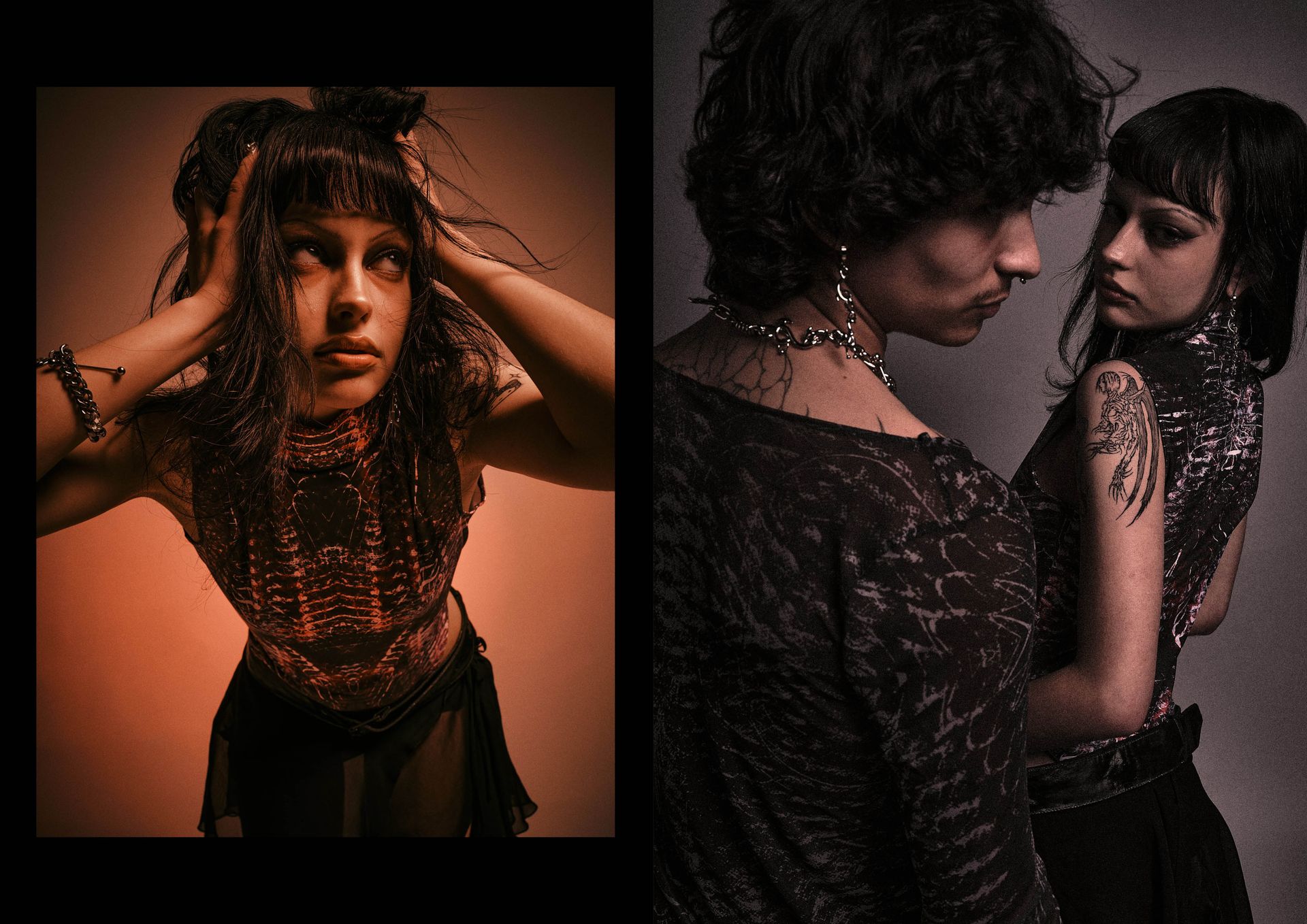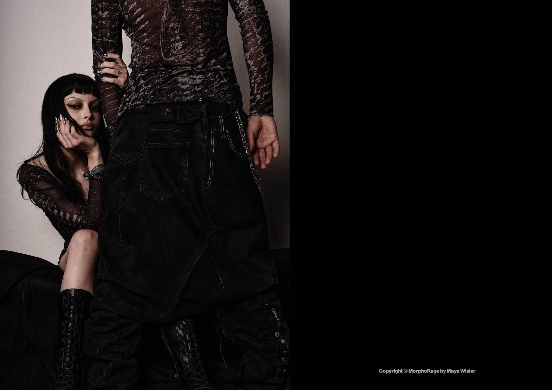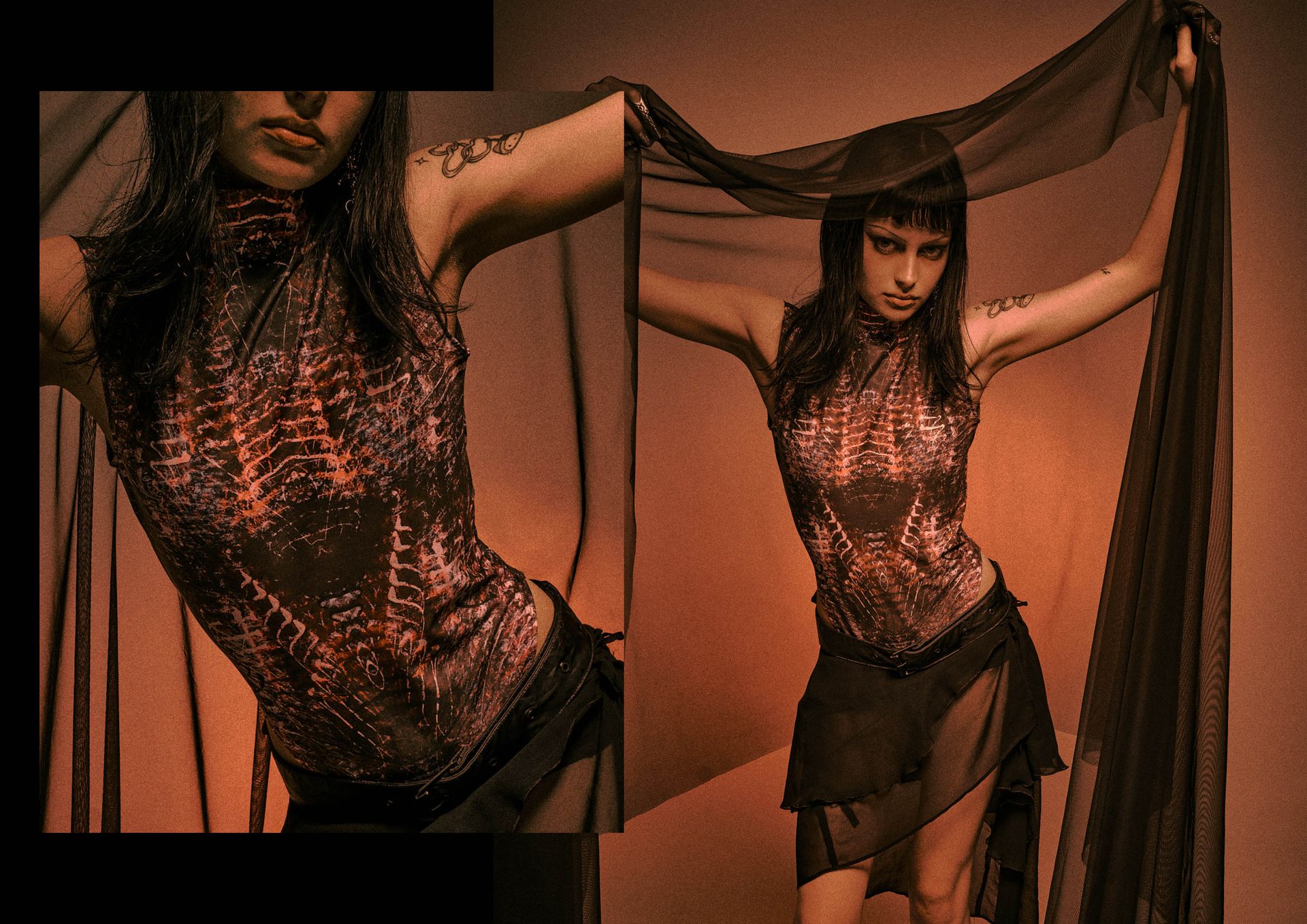 «A travers cette enveloppe corporelle, la matière se construit dans une danse obscure et rythmée. Cette seconde peau sonne les échos d’une âme déchirée, et le silence hurle. Les ténèbres s’embrassent, se consument dans un tourbillon de mystères profonds. C’est dans ce chaos sombre et hypnotique que se cache la beauté cruelle du néant.On a tous une part d’obscurité, il suffit de la dompter et de la sublimer.